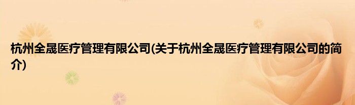 本文关于杭州全晟医疗管理有限公司的简介就讲解完毕,希望对大家有所帮助。