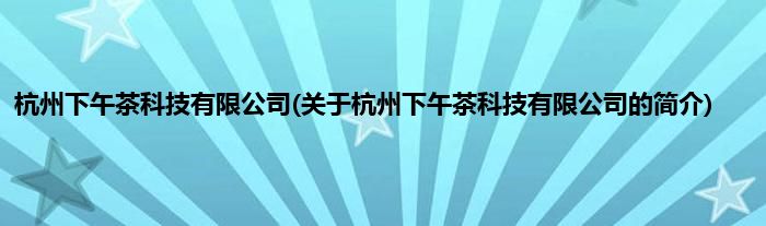 杭州下午茶科技有限公司(关于杭州下午茶科技有限公司的简介)