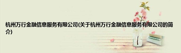 杭州万行金融信息服务有限公司(关于杭州万行金融信息服务有限公司的简介)