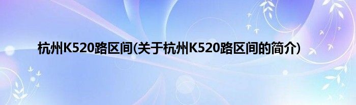 本文关于杭州K520路区间的简介就讲解完毕,希望对大家有所帮助。