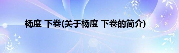 大家好,杨度 下卷,关于杨度 下卷的简介很多人还不知道,现在让我们一起来看看吧!