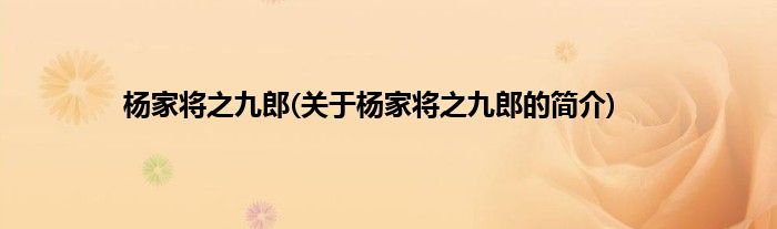 本文关于杨家将之九郎的简介就讲解完毕,希望对大家有所帮助。