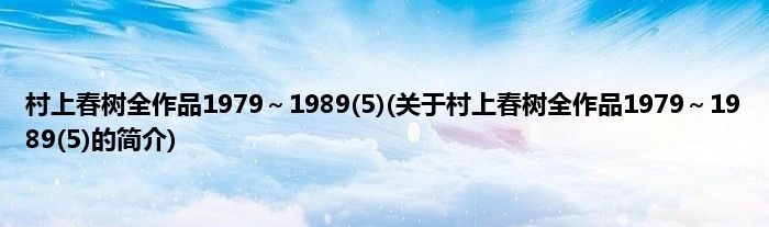 村上春树全作品1979~1989(5)(关于村上春树全作品1979~1989(5...