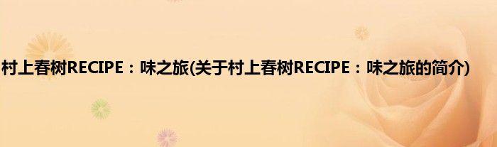 本文关于村上春树RECIPE:味之旅的简介就讲解完毕,希望对大家有所帮助。