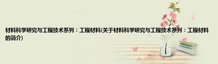 大家好,材料科学研究与工程技术系列:工程材料,关于材料科学研究与工程技术系列:工程材料的简介很多人还不知道,现在让我们一起来看看吧!