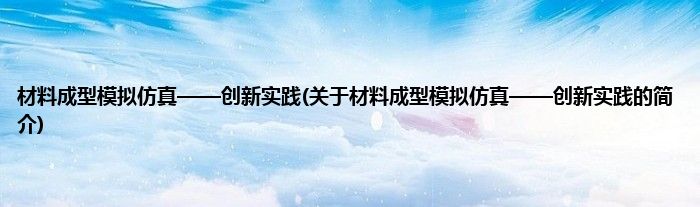 大家好,材料成型模拟仿真——创新实践,关于材料成型模拟仿真——创新实践的简介很多人还不知道,现在让我们一起来看看吧!