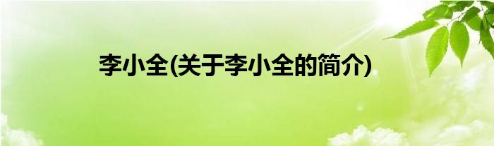 本文关于李小全的简介就讲解完毕,希望对大家有所帮助。