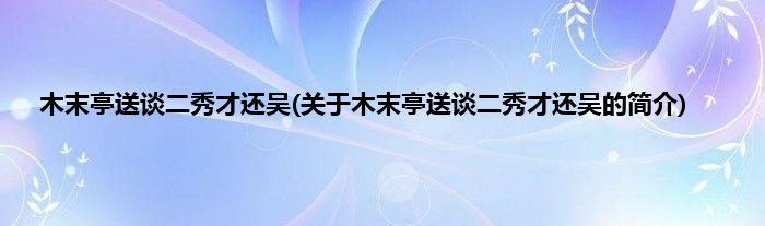 木末亭送谈二秀才还吴(关于木末亭送谈二秀才还吴的简介)