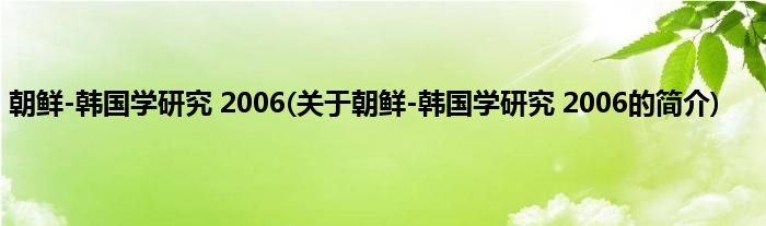 本文关于朝鲜-韩国学研究。2006的简介就讲解完毕,希望对大家有所帮助。