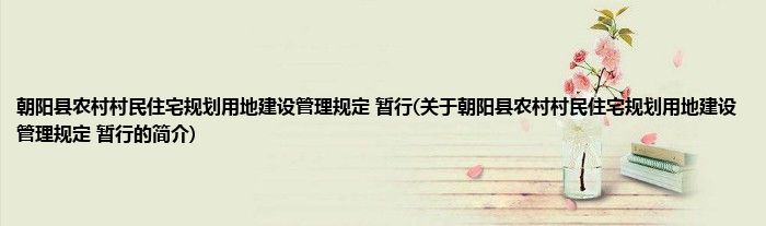 朝阳县农村村民住宅规划用地建设管理规定 暂行(关于朝阳县农村村民住宅规划用地建设管理规定 暂行的简介)