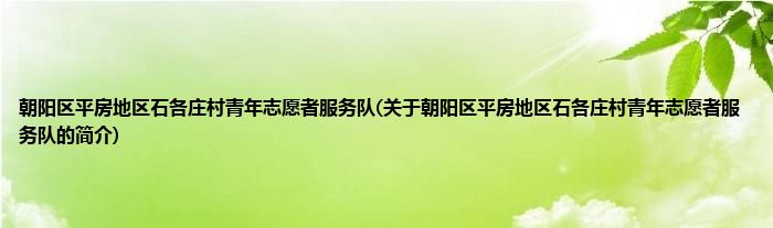 本文关于朝阳区平房地区石各庄村青年志愿者服务队的简介就讲解完毕,希望对大家有所帮助。