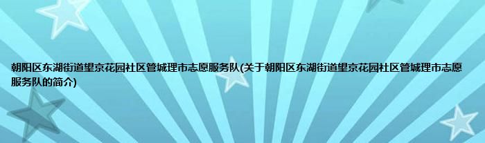 本文关于朝阳区东湖街道望京花园社区管城理市志愿服务队的简介就讲解完毕,希望对大家有所帮助。