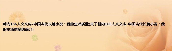 大家好,朝内166人文文库·中国当代长篇小说:我的生活质量,关于朝内166人文文库·中国当代长篇小说:我的生活质量的简介很多人还不知道,现在让我们一起来看看吧!
