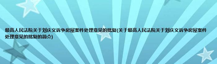 本文关于最高人民法院关于刘庆义诉争房屋案件处理意见的批复的简介就讲解完毕,希望对大家有所帮助。