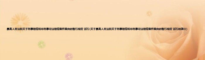 大家好,最高人民法院关于刑事赔偿和非刑事司法赔偿案件案由的暂行规定 试行,关于最高人民法院关于刑事赔偿和非刑事司法赔偿案件案由的暂行规定 试行的简介很多人还不知道,现在让我们一起来看看吧!
