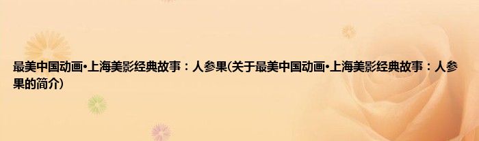 大家好,最美中国动画·上海美影经典故事:人参果,关于最美中国动画·上海美影经典故事:人参果的简介很多人还不知道,现在让我们一起来看看吧!