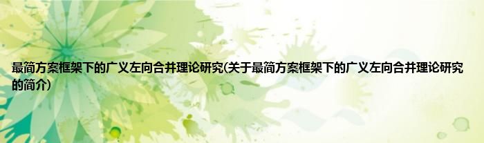 大家好,最简方案框架下的广义左向合并理论研究,关于最简方案框架下的广义左向合并理论研究的简介很多人还不知道,现在让我们一起来看看吧!