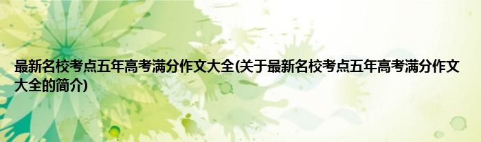 最新名校考点五年高考满分作文大全(关于最新名校考点五年高考满分作文大全的简介)
