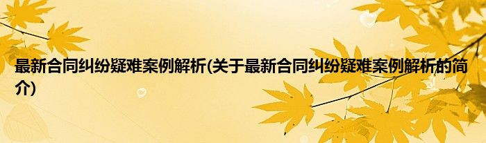 最新合同纠纷疑难案例解析(关于最新合同纠纷疑难案例解析的简介)