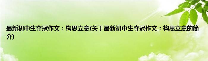 本文关于最新初中生夺冠作文:构思立意的简介就讲解完毕,希望对大家有所帮助。