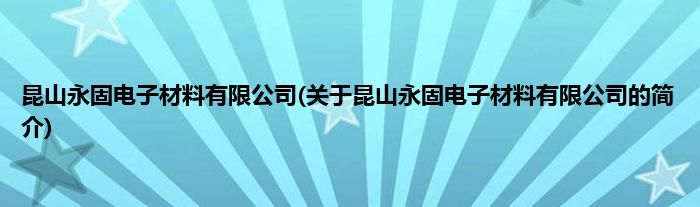 本文关于昆山永固电子材料有限公司的简介就讲解完毕,希望对大家有所帮助。