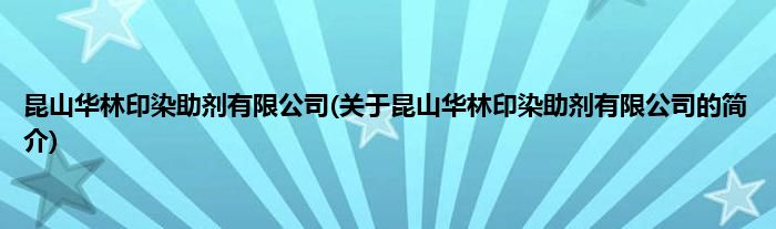本文关于昆山华林印染助剂有限公司的简介就讲解完毕,希望对大家有所帮助。