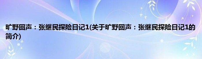 大家好,旷野回声:张继民探险日记1,关于旷野回声:张继民探险日记1的简介很多人还不知道,现在让我们一起来看看吧!