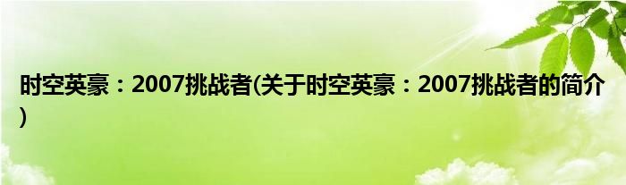大家好,时空英豪:2007挑战者,关于时空英豪:2007挑战者的简介很多人还不知道,现在让我们一起来看看吧!