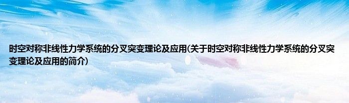 时空对称非线性力学系统的分叉突变理论及应用(关于时空对称非线性力学系统的分叉突变理论及应用的简介)