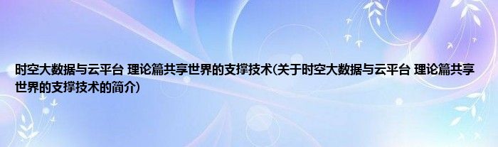 本文关于时空大数据与云平台 理论篇共享世界的支撑技术的简介就讲解完毕,希望对大家有所帮助。