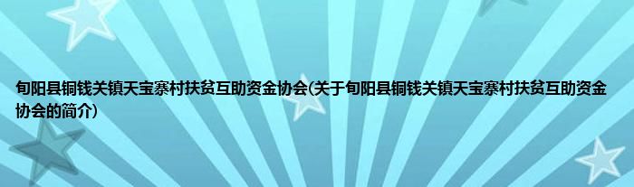 旬阳县铜钱关镇天宝寨村扶贫互助资金协会(关于旬阳县铜钱关镇天宝寨村扶贫互助资金协会的简介)