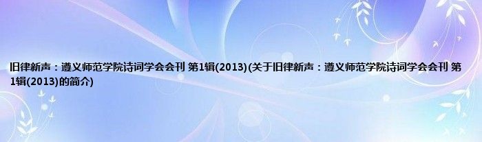 1、 《旧律新声:遵义师范学院诗词学会会刊(第1辑)(2013)》是2013年6月1日西南交通大学出版社出版的图书。