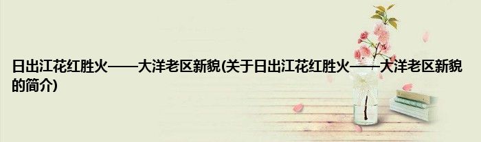 日出江花红胜火——大洋老区新貌(关于日出江花红胜火——大洋老区新貌的简介)