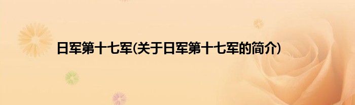本文关于日军第十七军的简介就讲解完毕,希望对大家有所帮助。