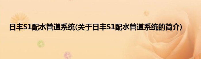 本文关于日丰S1配水管道系统的简介就讲解完毕,希望对大家有所帮助。