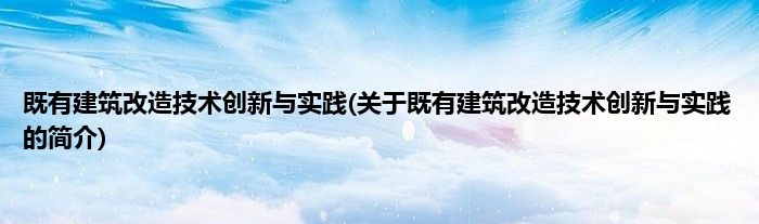 大家好,既有建筑改造技术创新与实践,关于既有建筑改造技术创新与实践的简介很多人还不知道,现在让我们一起来看看吧!