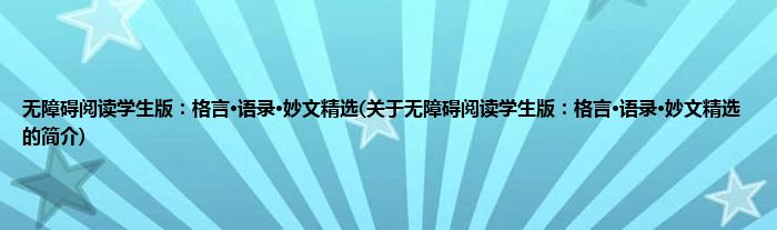 本文关于无障碍阅读学生版:格言·语录·妙文精选的简介就讲解完毕,希望对大家有所帮助。