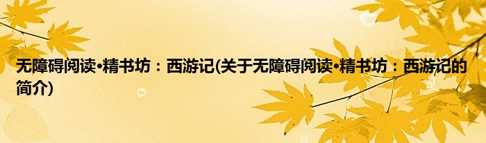 本文关于无障碍阅读·精书坊:西游记的简介就讲解完毕,希望对大家有所帮助。