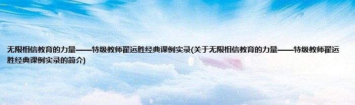 本文关于无限相信教育的力量——特级教师翟运胜经典课例实录的简介就讲解完毕,希望对大家有所帮助。