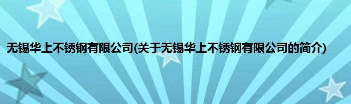 本文关于无锡华上不锈钢有限公司的简介就讲解完毕,希望对大家有所帮助。