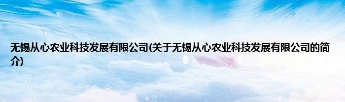 本文关于无锡从心农业科技发展有限公司的简介就讲解完毕,希望对大家有所帮助。