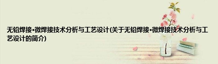 大家好,无铅焊接·微焊接技术分析与工艺设计,关于无铅焊接·微焊接技术分析与工艺设计的简介很多人还不知道,现在让我们一起来看看吧!