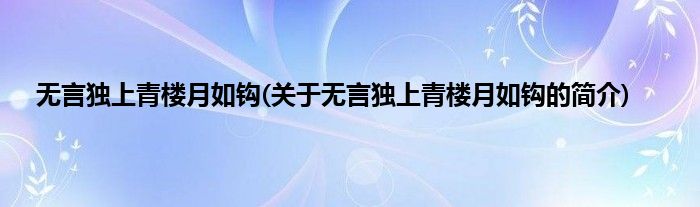 本文关于无言独上青楼月如钩的简介就讲解完毕,希望对大家有所帮助。