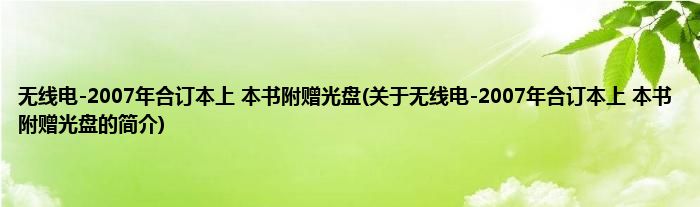 无线电-2007年合订本上 本书附赠光盘(关于无线电-2007年合订本上 本书附赠光盘的简介)