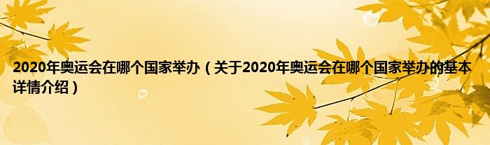 本文关于2020年奥运会在哪个国家举办的基本详情介绍就讲解完毕,希望对大家有所帮助。