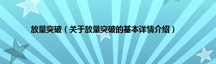 1、放量突破是指大盘在积累了大量的资金后形成的向上攻击的走势。