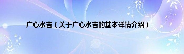 大家好我是小蝌蚪,广心水吉,关于广心水吉的基本详情介绍很多人还不知道,那么现在让我们一起来看看吧!
