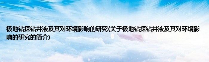 大家好,极地钻探钻井液及其对环境影响的研究,关于极地钻探钻井液及其对环境影响的研究的简介很多人还不知道,现在让我们一起来看看吧!