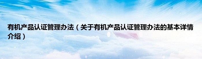 有机产品认证管理办法(关于有机产品认证管理办法的基本详情介绍)