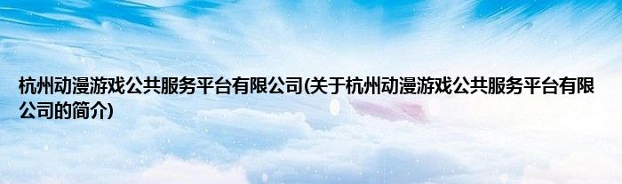 本文关于杭州动漫游戏公共服务平台有限公司的简介就讲解完毕,希望对大家有所帮助。